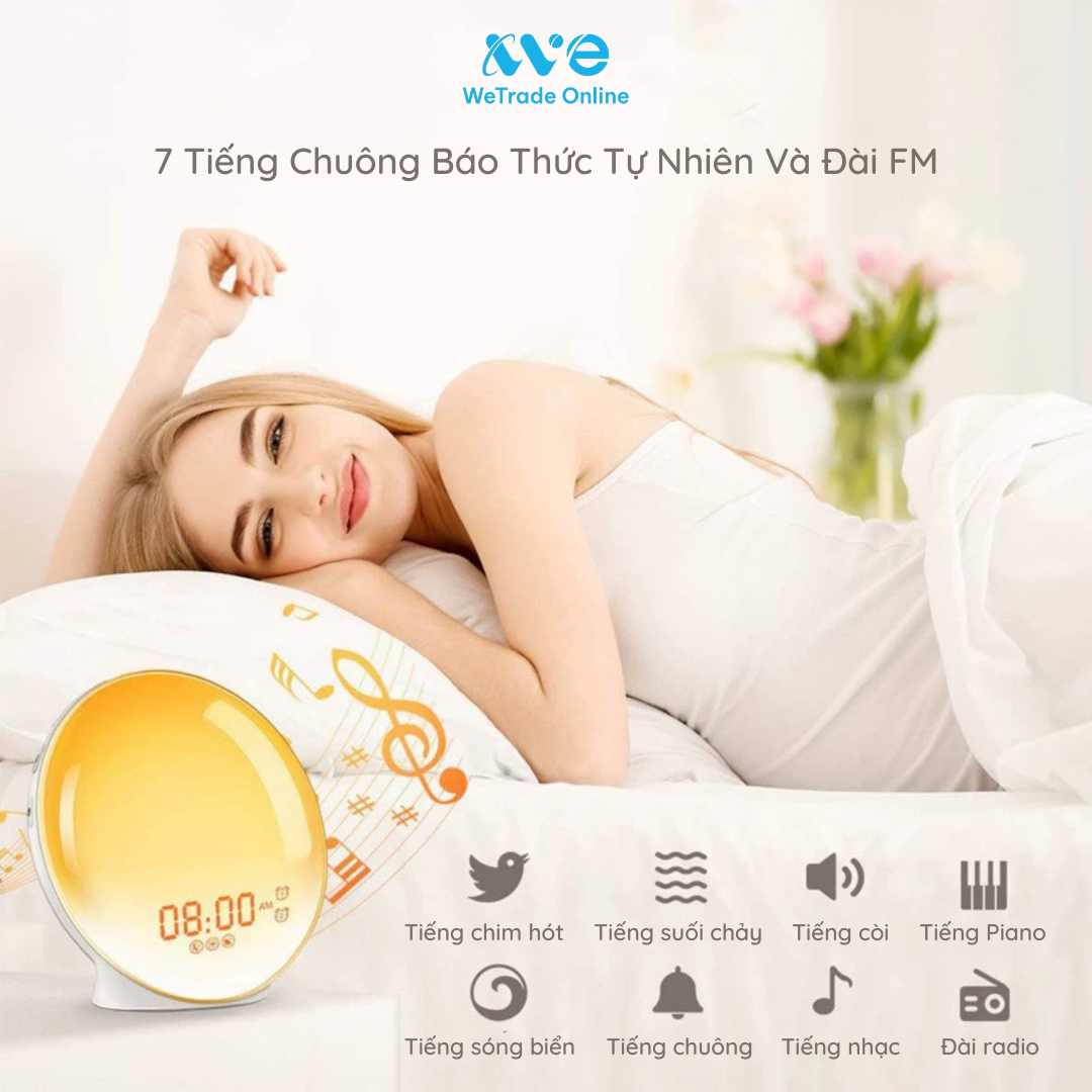 - Đèn ngủ mô phỏng bình minh hoặc hoàng hôn với 7 lựa chọn màu sắc