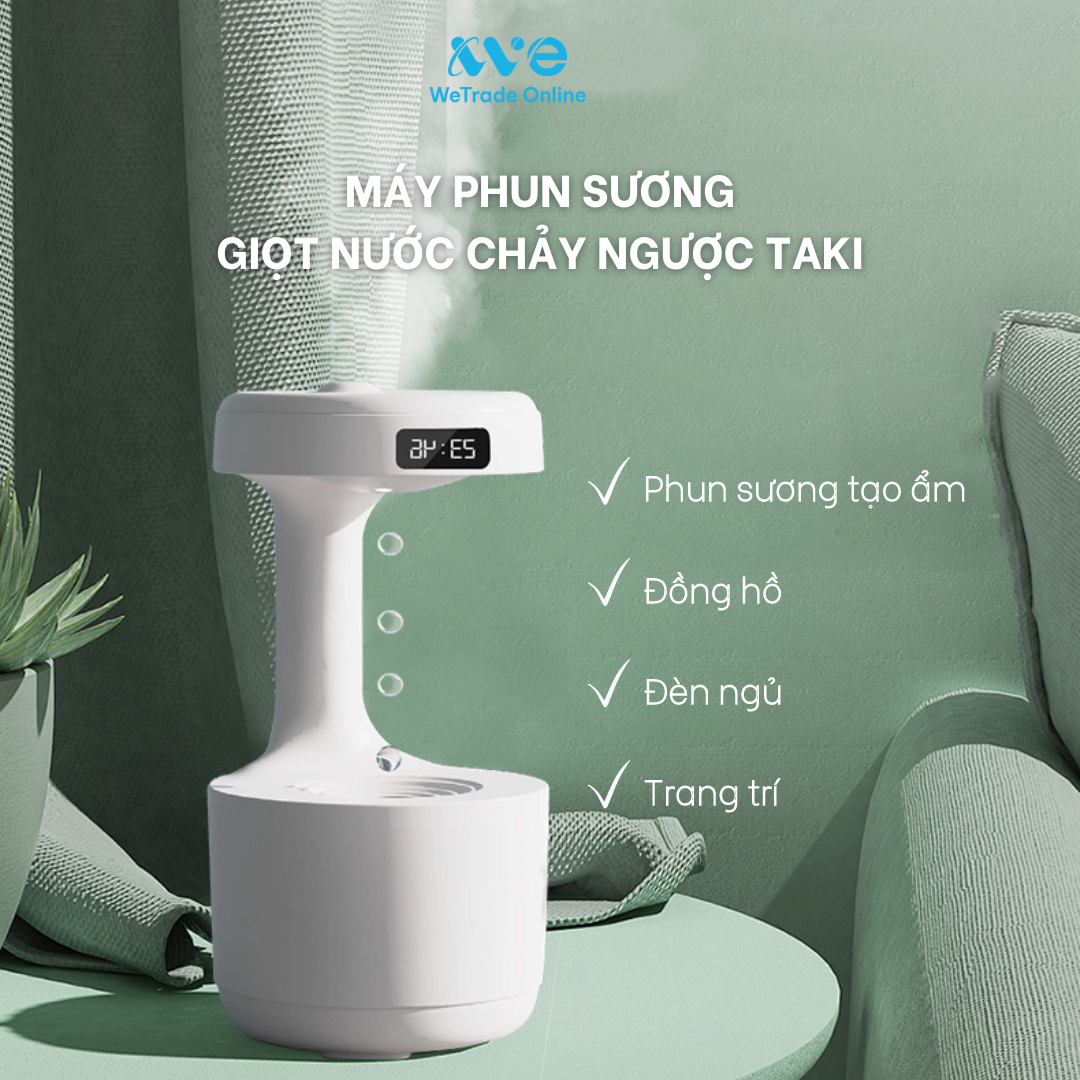 Máy phun sương tạo ẩm đáng mua nhất hiện nay chính là máy phun sương tạo ẩm giọt nước chảy ngược TAKI. Máy phun sương tạo ẩm giọt nước chảy ngược TAKI sở hữu giao diện TYPE-C tiêu chuẩn quốc tế cùng chất liệu ABS bền đẹp an toàn phù hợp với diện tích phòng ở từ 31m² - 40m². Đệm dưới máy chống trượt ổn định nên bạn hoàn toàn có thể yên tâm đặt máy phun sương TAKI ở bất kỳ vị trí nào mà không sợ rơi vỡ, trơn trượt. Đầu phun sương của máy được thiết kế chi tiết, chất lượng với khả năng phun sương tốt tạo được độ ẩm tối ưu trong không khí từ 50%-60%. Ngoài ra, máy phun sương tạo ẩm giọt nước chảy ngược TAKI còn tích hợp lõi lọc kép, lần đầu sẽ lọc sơ qua nước, lần thứ 2 sẽ khử trùng bằng tia cực tím để loại bỏ vi khuẩn đem lại có người sử dụng không gian sống an toàn cho sức khỏe. Đặc biệt, với công nghệ giọt nước chảy ngược phản trọng lực đặc biệt vừa giúp hấp thụ các chất độc hại trong quá trình sinh hoạt vừa thích hợp để trang trí phòng làm việc, phòng khách để tạo điểm nhấn cho không gian sống thêm phần nghệ thuật.
