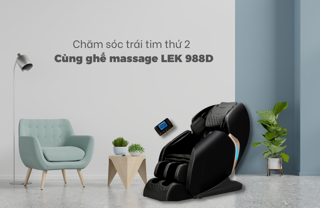 Ghế massage toàn thân Leercon LEK 988D là món đồ gia dụng sở hữu con lăn 4D di chuyển trái - phải, lên - xuống, trong - ngoài, trước - sau theo khung sườn SL giúp massage kéo giãn toàn thân vô cùng hiệu quả với các bài massage kiểu Thái, kiểu Nhật. Chế độ massage không trọng lực của ghế massage toàn thân Leercon LEK - 988D làm giảm thiểu áp lực tối đa lên cột sống và các khớp xương trên cơ thể, giảm áp lực ở cơ hoành để mở rộng không gian phổi, tăng cường oxy trong máu, tốt cho hệ tim mạch và giúp đưa máu về tim tốt hơn. Tính năng sưởi nhiệt trị liệu đặt ở phần lưng hông kích thích mạch máu dưới da, thúc đẩy mở rộng mạch máu giúp khí huyết lưu thông giảm đau mỏi, căng cứng cơ bắp dai dẳng khi chúng ta ngồi quá lâu.