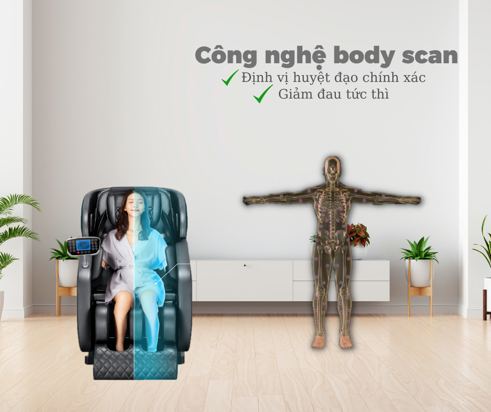 - Công nghệ ghế massage: công nghệ sưởi nhiệt, công nghệ quét cơ thể, con lăn massage mô phỏng bàn tay người,massage không trọng lực ...