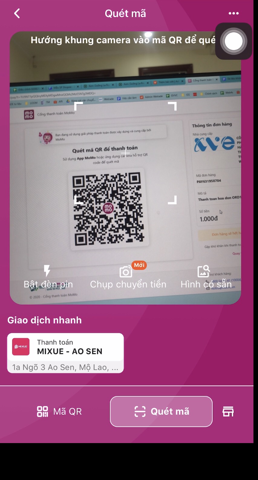 Hướng dẫn sử dụng ví MOMO quét mã QR thanh toán đơn hàng