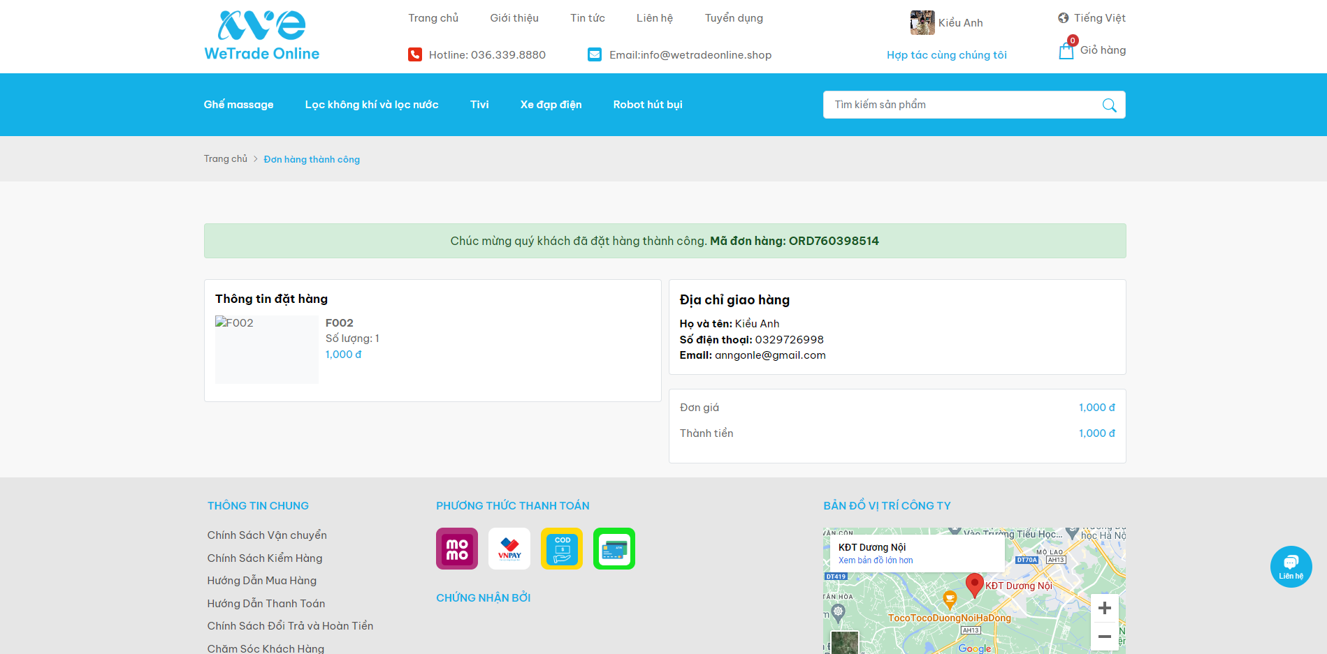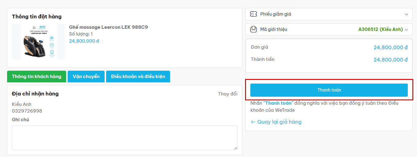 Bấm xác nhận "Thanh toán" sau khi đã lựa chọn mặt hàng cần mua