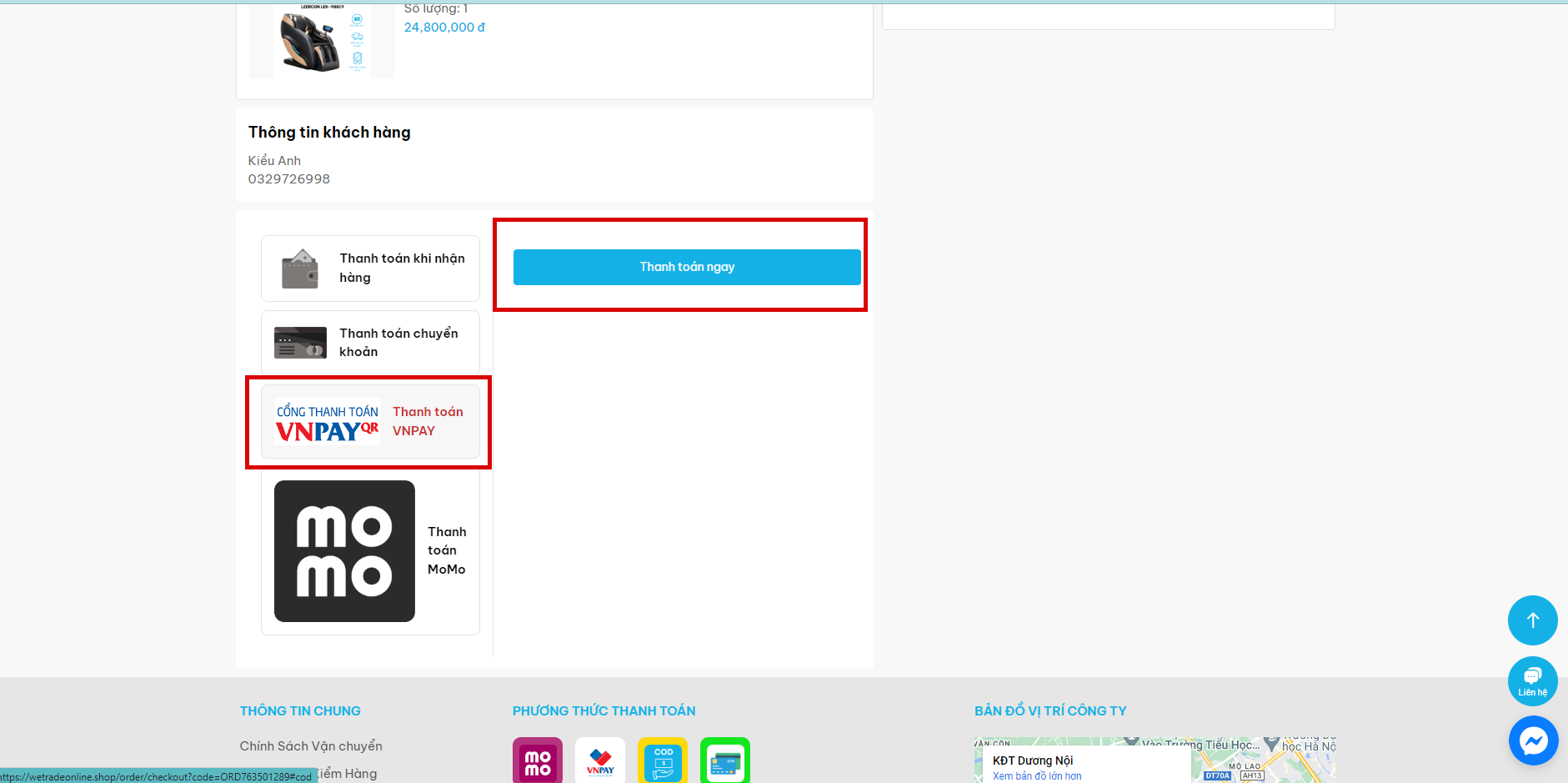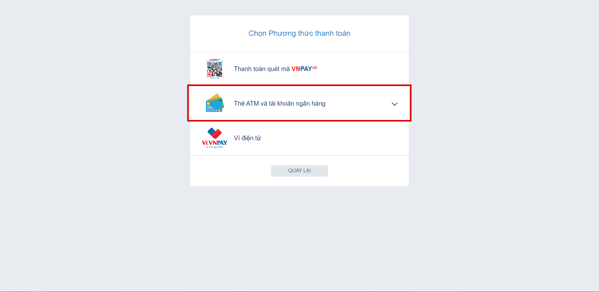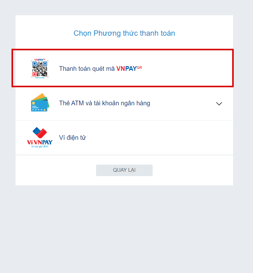 Lựa chọn hình thức thanh toán "Thanh toán VNPay"
