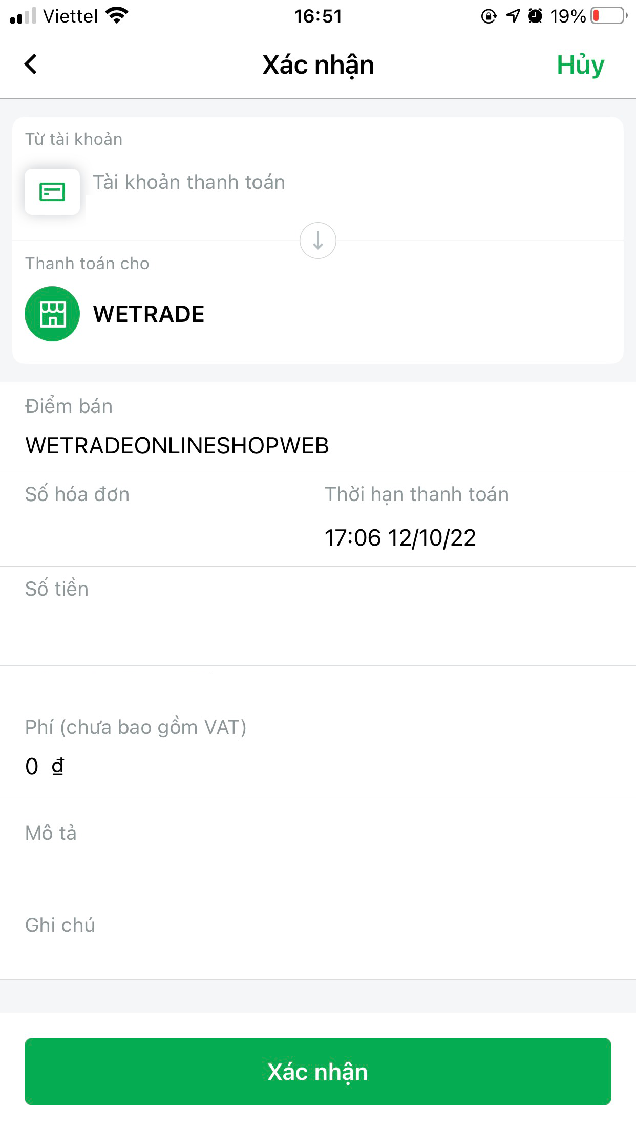 Ngoài các hình thức thanh toán bằng tiền mặt khi nhận hàng (COD) các loại voucher, WeTrade đã tích hợp phương thức Thanh toán trực tuyến (Internet Banking, VNPAY-QR, Ví điện tử VNPAY, Visa - Miễn phí thanh toán) qua cổng thanh toán VNpay và hoàn toàn miễn phí giao dịch.