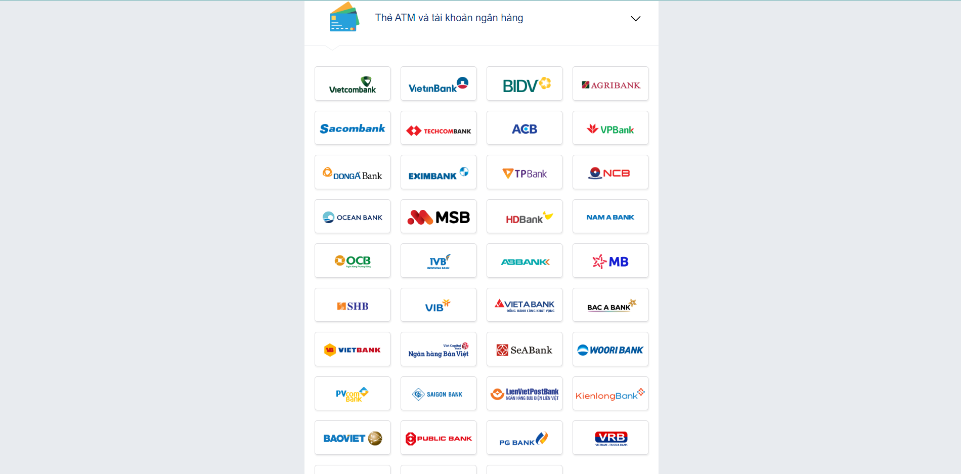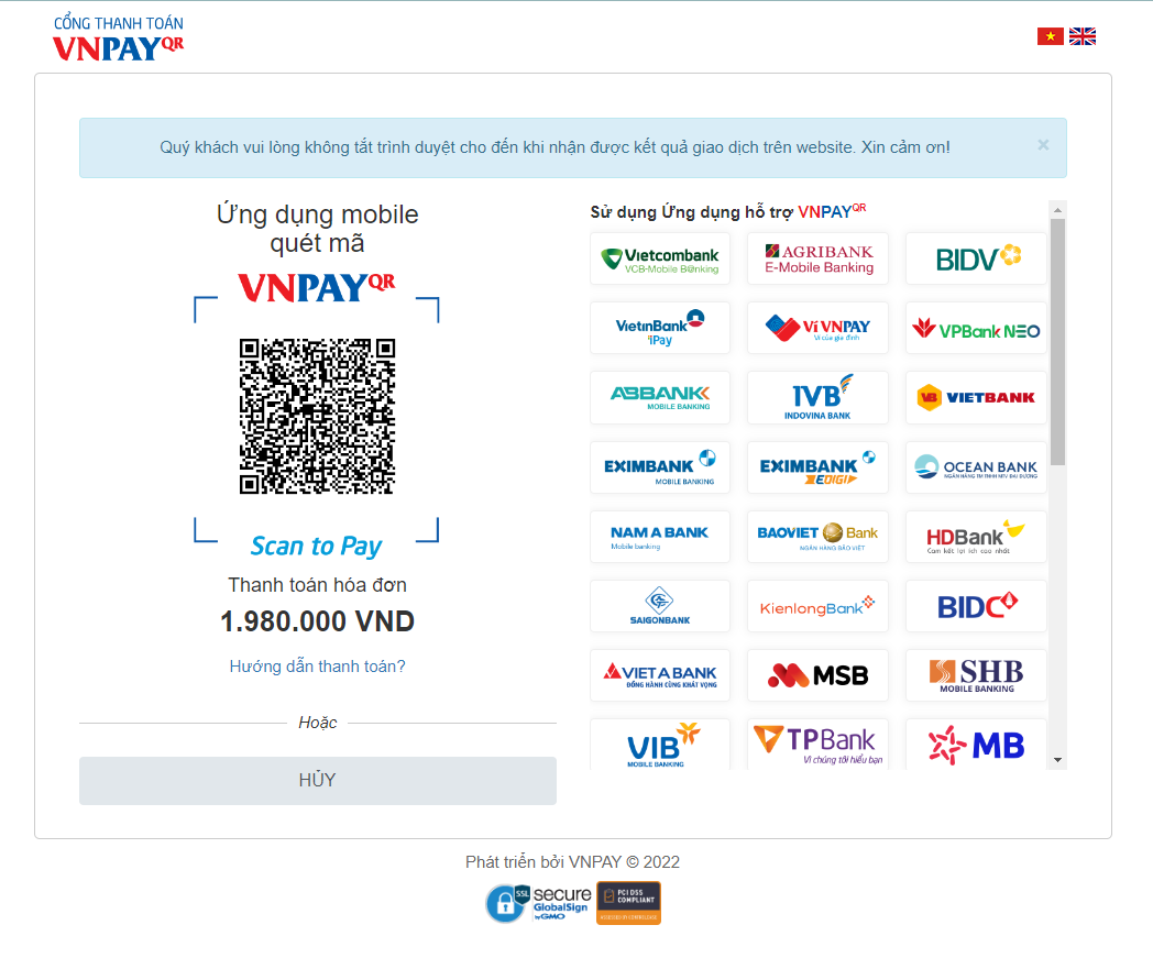 Ngân hàng hỗ trợ thanh toán bằng VNPAY-QR